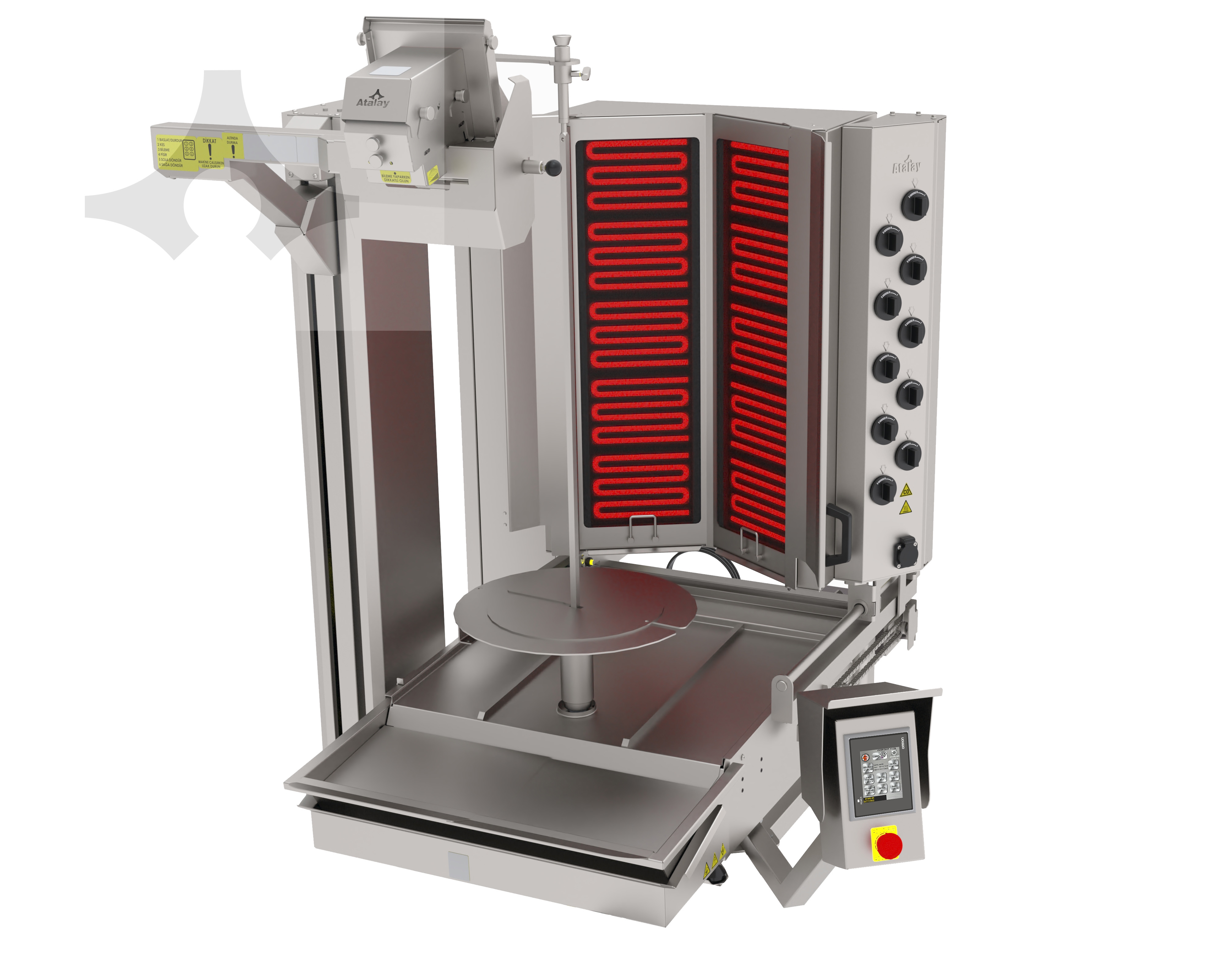 • Has bain-marie which holds Doner Kebab inside in optimum heat.
