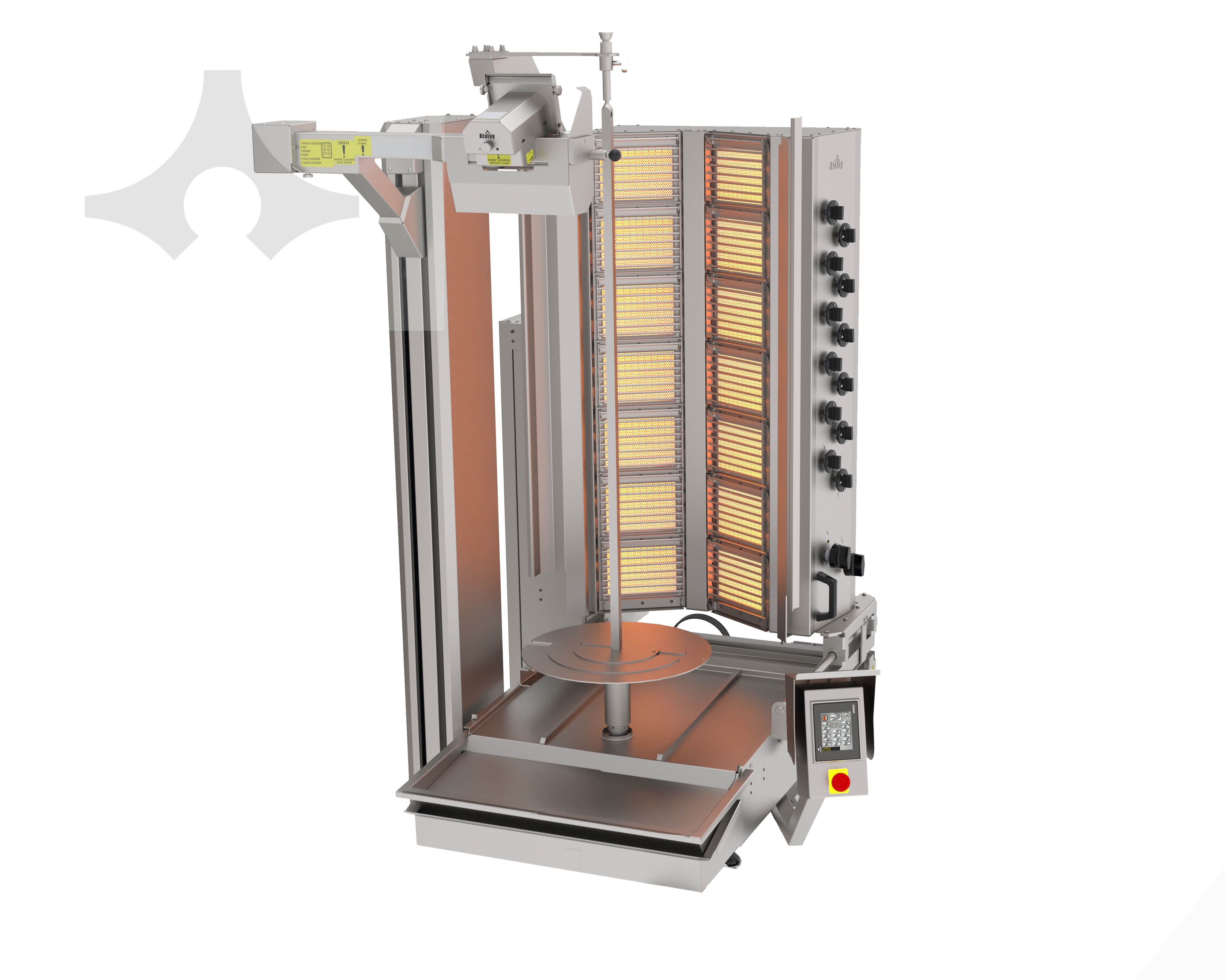 • Has bain-marie which holds Doner Kebab inside in optimum heat.